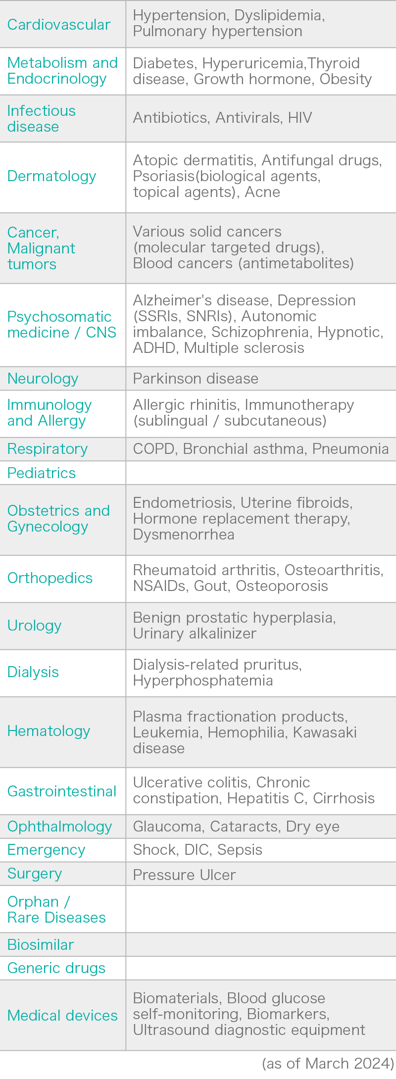 ONO PHARMACEUTICAL CO., LTD., Otsuka Pharmaceutical Co., Ltd., Daiichi Sankyo Company, Limited, TAIHO PHARMACEUTICAL CO., LTD., MOCHIDA PHARMACEUTICAL CO., LTD., SHIONOGI & CO., LTD., Toray Industries, Inc., JAPAN TOBACCO INC., Torii Pharmaceutical Co., Ltd., KAKEN PHARMACEUTICAL CO., LTD., Nippon Kayaku Co., Ltd., Yakult Honsha Company, Limited, Meiji Seika Pharma Co., Ltd., KOWA COMPANY LTD., EA Pharma Co., Ltd., ASKA Pharmaceutical Co., Ltd., NIPRO CORPORATION, Japan Blood Products Organization, Nippon Chemiphar Co., Ltd., Nobelpharma Co., Ltd.